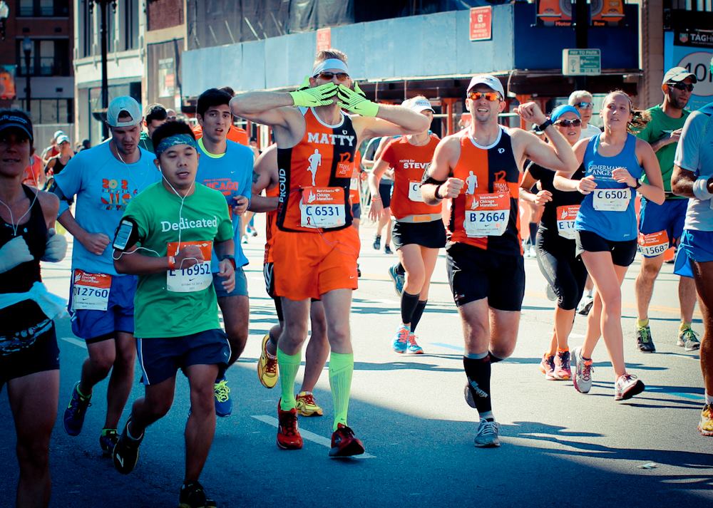 I continue to run because it is the single thing in life that has brought me to a place of understanding what it feels like to be part of the team. Growing up I wasn’t an athlete. I wasn’t part of a team. Sure, I marched in band and sang in musicals, but nothing ever felt like a team until I started running. After my first marathon I began to get that feeling. Running on the Lake Shore path in Chicago I’d get a head nod here or a smile there from other runners. They understood what I was doing and I understood them, especially on those super hot days or cold days or rainy days when only us crazy runners go out. But not until last year did I truly understand what it is like to be part of a team. I joined the Team to Ends AIDS purely for two reasons: 1. To get a BIB for the New York City marathon and 2. To focus my energies on something good in midst of a break-up. Saturday after Saturday I would get up at 5 a.m. and head to the lake for a run. I’d meet my teammates, chitchat, and get to running. Week after week I would run with about the same crew as we were the same pace. Week after week we would chat about work, weekend plans, pains of running, fundraising, etc. Then, one Saturday as we got ready to run, one of my pace group leaders stood to give a talk. He raised his hand high with a green wristband acknowledging (+) his positive status. Then a few more guys came up and got wristbands. As I looked around, five of my 9 pace group running mates were HIV positive. No longer did I just join T2 to get into the NYC marathon, I was part of something much bigger. I was raising money and raising awareness for the HIV/AIDS epidemic. From that moment on, when I would go out running with my T2 shirt on and I’d hear other people on the path, “Go T2”, “Looking good T2,” I finally felt what it is like to be part of a team. I finally had that feeling that I so longed to have, that camaraderie that teammates share. I was part of a team that was raising money to help some of the very men I was running with week after week.