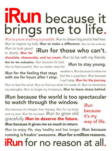 I run because it reminds me that I’m alive and that we don’t always know what the person next to us is going through on a daily basis, but they keep going, and I keep going because it brings me to life.
